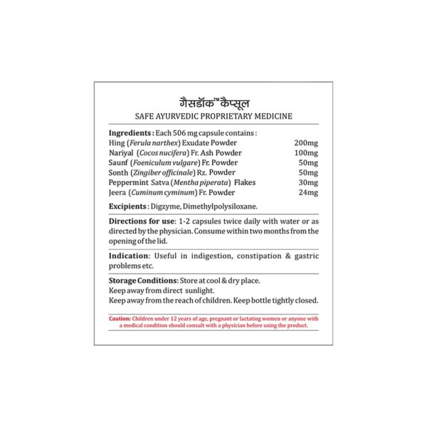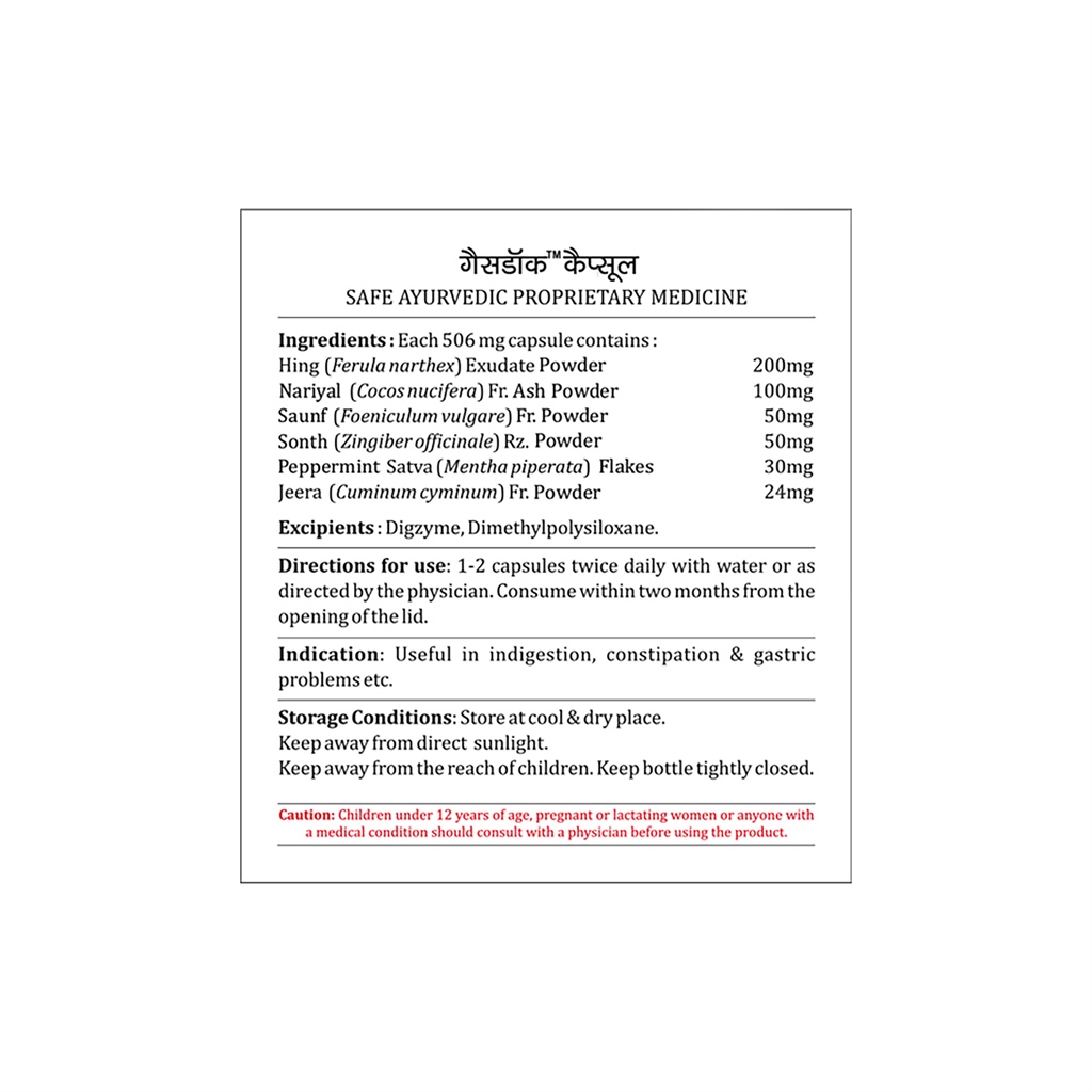 GASDOC is a daily-use Ayurvedic capsule formulated to support digestion, reduce bloating, and promote gut comfort. It works gently by calming aggravated vata and strengthening agni (digestive fire).