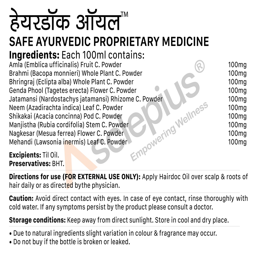 | How to Use: | • For external use only • Apply Hair Doc Oil over scalp and roots of hair daily or as directed by physician |