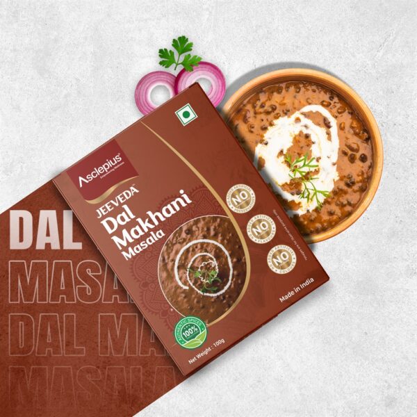 | How to Use: | In a pressure cooker, heat 1 tablespoon ghee, then add 1 cup soaked rajma, 1 cup chana dal, 1 cup moong dal, 1 cup urad dal, water, ginger-garlic paste, red chilli powder, turmeric powder and coriander powder. Sauté on medium heat for 2-3 minutes. Add milk, green cardamom and cloves. Bring to a boil, then add water and salt to taste. Cook for 3-4 whistles. In a heavy-bottomed pan, heat ghee, then add the prepared paste and cook until the oil separates. Add 1 teaspoon red chilli powder, 2 tablespoons Jeeveda Dal Makhani Masala, 1 teaspoon turmeric powder, 1 teaspoon coriander powder and a pinch of hing (asafoetida). Stir well, then add 3 fresh tomato purees and cook for 4-5 minutes on medium heat. Add the cooked dal, cover and simmer for 5-10 minutes. Mash the dal using a ladle. Add unsalted butter and kasuri methi and bring to a final boil. Serve hot with steamed rice, garnished with fresh cream and coriander leaves. |